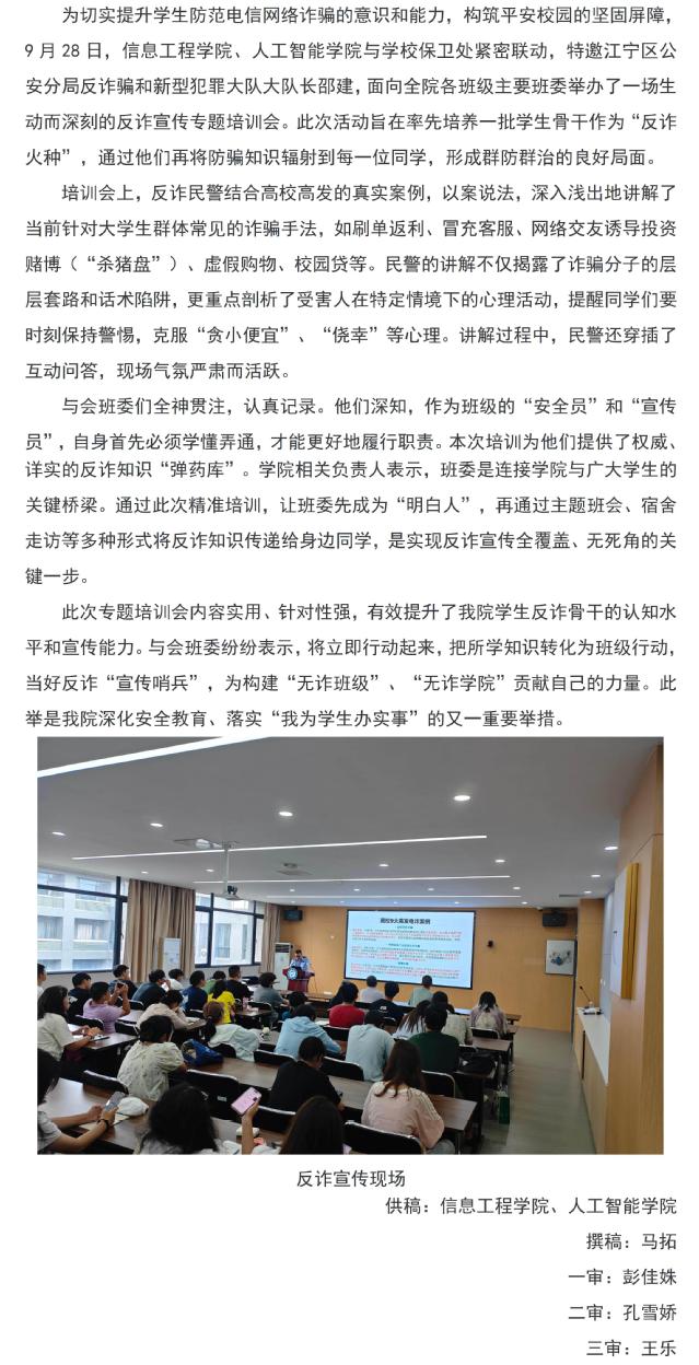 警校联动筑牢防线,班委先行辐射全员:信工院联合校保卫处举办反诈宣传骨干专题培训会